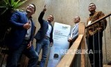 Senior Executive Vice President (SEVP) Retail Banking Mandiri Syariah Wawan Setiawan (kedua kiri), menunjuk disaksikan Corporate Secretary Ahmad Reza (kedua kanan), Group Head Consumer and Finance Praka Mulia Agung (kiri) dan Region Head III Jakarta Deden Durachman, disela peluncuran Griya Berkah, pembiayaan pemilikan rumah dengan hadiah porsi haji dalam bentuk Tabungan Mabrur, di Jakarta, Rabu (29/1/2020). (FOTO : Antara/Audy Alwi)