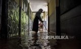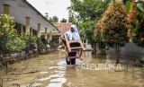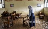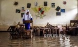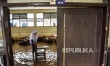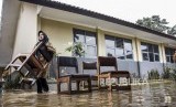 REPUBLIKA.CO.ID, BANDUNG -- Siswa mengevakuasi kursi saat banjir di SMPN 1 Bojongsoang, Jalan Raya Sapan, Kecamatan Bojongsoang, Kabupaten Bandung, Kamis (30/1). Banjir yang menggenangi sejak Jumat (24/1) di kawasan tersebut mengakibatkan sejumlah ruang kelas sekolah masih tergenang air.
