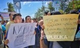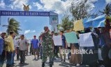 REPUBLIKA.CO.ID,JAKARTA -- Warga Natuna melakukan aksi unjuk rasa di depan gerbang pangkalan TNI Angkatan Udara Raden Sadjad, Ranai, Natuna, Kepulauan Riau, Sabtu (1/2).
