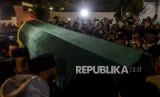 Sejumlah kerabat mengangkat keranda jenazah KH Salahuddin Wahid atau Gus Sholah di rumah duka, Mampang Prapatan, Jakarta, Ahad (2/2) malam. (FOTO : Republika/Putra M. Akbar)