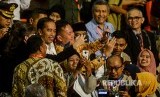 Presiden Joko Widodo menyalami peserta usai memberikan pengarahan pada Rapat Koordinasi Nasional (Rakornas) Penanggulangan Bencana 2020 di Sentul International Convention Center, Bogor, Jawa Barat, Selasa (4/2). (FOTO : Putra M Akbar)