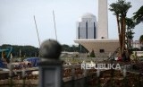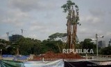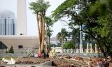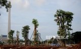 Pohon-pohon baru tertanam di lokasi revitalisasi Plaza Selatan Monumen Nasional (Monas), Jakarta, Selasa (4/2). (FOTO : Republika/Prayogi)