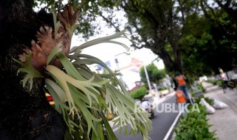 Perawatan Anggrek lur Pedestrian. Anggrek di jalur pedestrian Jalan Suroto, Yogyakarta, Rabu (5/2). (FOTO : Republika/ Wihdan)