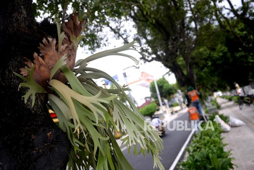Namun di jalur pedestrian Jl Suroto, Yogyakarta, bunga anggrek cantik menghiasi jalanan ini. Menempel pada pohon peneduh sebagai tanaman inangnya.
