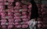 Pedagang membawakan bawang putih impor dari China ke pembelinya di pasar tradisional Baruga, Kendari, Sulawesi Tenggara, Rabu (5/2/2020). (FOTO : JOJON/ANTARA FOTO)
