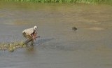 BKSDA setempat kini tengah berusaha untuk melepaskan ban tersebut. Untuk itu sebelumnya sang buaya harus ditangkap dan dilumpuhkan. Mereka memasang jaring dan umpan untuk memancing buaya itu.