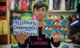 Pengrajin memperlihatkan salah satu produk dari sampah plastik di rumah produksi Gang Masjid Al-Falah, Pasar Minggu, Jakarta, Selasa (11/2). (FOTO : Republika/Thoudy Badai)