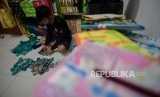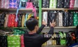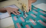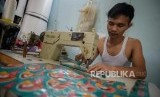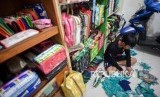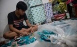 Pengrajin menyelesaikan pembuatan tas dari sampah plastik di rumah produksi Gang Masjid Al-Falah, Pasar Minggu, Jakarta, Selasa (11/2). (FOTO : Republika/Thoudy Badai)