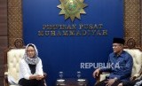 Menlu Temui Ketum PP Muhammadiyah. Menlu Retno Marsudi (kanan) bersama Ketum PP Muhammadiyah Haedar Nashir usai pertemuan tertutup di Kantor PP Muhammadiyah, Yogyakarta, Rabu (12/2). (FOTO : Wihdan Hidayat/ Republika)