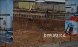 Suasana pembangunan proyek Pasar Senen Blok I dan II di Kawasan Pasar Senen, Jakarta Pusat, Rabu (12/2). (FOTO : Republika/Thoudy Badai)