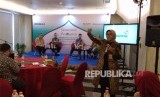 Pemimpin Redaksi Republika , Irfan Junaidi (kanan) memberikan materi tentang peran penting media untuk mensosialisasikan kesehatan, dalam acara silaturahim dengan puluhan pengurus Pondok Pesantren di Jawa Timur, yang digelar di Crown Prince Hotel Surabaya, Selasa (11/2). (FOTO : Dadang Kurnia/Republika)