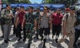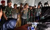 REPUBLIKA.CO.ID, JAKARTA -- Panglima TNI Marsekal TNI Hadi Tjahjanto (kiri) bersama Kapolri Jenderal Pol Idham Azis (ketiga kiri) melakukan kunjungan ke Posko Bakti Kesehatan di Ranai, Natuna, Kepulauan Riau, Kamis (13/2/2020).