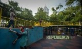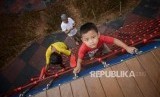 Sejumlah anak bermain di salah satu fasilitas permainan di area Taman Puring, Jakarta, Jumat (14/2). (FOTO : Republika/Thoudy Badai)