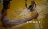 REPUBLIKA.CO.ID, JAKARTA -- Sejumlah anak bermain di salah satu fasilitas permainan di area Taman Puring, Jakarta, Jumat (14/2).