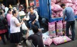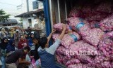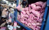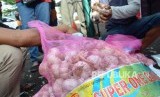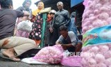 Operasi pasar bawang putih yang digelar Disperindag Jabar, Satgas Pangan Jabar dan Importir Bawang Putih, di Pasar Kosambi, Kota Bandung, Senin (17/2). (FOTO : Republika/Edi Yusuf)