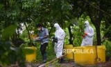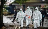 Tim Badan Tenaga Nuklir Nasional (BATAN) bersama Badan Pengawas Tenaga Nuklir (Bapeten) melakukan Dekontaminasi terhadap temuan paparan tinggi radioaktif di Perumahan Batan Indah, Serpong, Tangerang Selatan, Banten, Senin (17/2/2020). (FOTO : Antara/Muhammad Iqbal)
