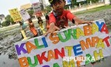Mereka mengimbau masyarakat Surabaya agar tidak membuang sampah plastik di sungai.
