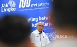 Direktur Utama MRT Jakarta, William Sabandar menyampaikan sambutan disela-sela penandatanganan kerja sama (MOU) proyek pembangunan MRT fase 2A dan lingkup kerja CP201 di Stasiun Bundaran Hotel Indonesia (HI), Jakarta, Senin (17/2/2020). (FOTO : Antara/M Risyal Hidayat)