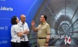 Gubernur DKI Jakarta Anies Baswedan (kanan) berbincang dengan Direktur Utama MRT Jakarta, William Sabandar (kedua kiri) dan Direktur Konstruksi PT MRT Jakarta Silvia Halim (kiri) usai penandatanganan kerja sama (MOU) proyek pembangunan MRT fase 2A dan lingkup kerja CP201 di Stasiun Bundaran Hotel Indonesia (HI), Jakarta, Senin (17/2/2020). (FOTO : Antara/M Risyal Hidayat)