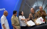REPUBLIKA.CO.ID, JAKARTA -- Gubernur DKI Jakarta Anies Baswedan bersama Direktur Utama MRT Jakarta, William Sabandar dan Duta Besar Jepang untuk RI Masafumi Ishii menyaksikan Direktur Ko nstruksi PT MRT Jakarta Silvia Halim dan Representative Shimizu-Adhi Joint Venture Yutaka Okumura berjabat tangan usai penandatanganan kerjasama (MOU) proyek pembangunan MRT fase 2A dan lingkup kerja CP201 di Stasiun Bundaran Hotel Indonesia (HI), Jakarta, Senin (17/2/2020).