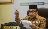 Menteri Agama Fachrul Razi menyampaikan keterangan saat jumpa pers kinerja Kementerian Agama di Jakarta, Selasa (18/2). (FOTO : Republika/Putra M. Akbar)