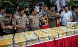 Barang bukti narkoba saat pemusnahan barang bukti narkoba di Polda Metro Jaya, Jakarta, Rabu (19/2). (FOTO : Republika/Thoudy Badai)