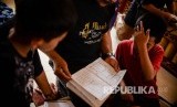 Sejumlah anak belajar pedalangan di Sanggar Nirmalasari, Cinere, Depok, Jawa Barat, (FOTO : Thoudy Badai)