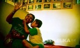 Seorang ibu bercanda dengan anaknya di sela-sela waktu sekolah dalang di Sanggar Nirmalasari, Cinere, Depok. (FOTO : Thoudy Badai)