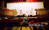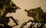 Bayangan wayang kulit yang tengah dipentaskan oleh para dalang cilik di Sanggar Nirmalasari, Cinere, Depok, Jawa Barat, (FOTO : Thoudy Badai)