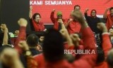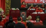 Ketua Umum PDI Perjuangan Megawati Soekarnoputri (kiri) memberikan pengarahan pada acara penetapan pasangan calon kepala daerah dan wakil kepala daerah yang didukung dalam pemilihan kepala daerah (Pilkada) 2020 di DPP PDI Perjuangan, Menteng, Jakarta, Rabu (19/2). (FOTO : Republika/Putra M. Akbar)