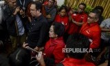 Ketua Umum PDI Perjuangan Megawati Soekarnoputri (tengah) bersama Sekjen PDI Perjuangan Hasto Kristyanto (kanan) Kepala Situation Room M. Prananda Prabowo (kiri) tiba pada acara penetapan pasangan calon kepala daerah dan wakil kepala daerah yang didukung dalam pemilihan kepala daerah (Pilkada) 2020 di DPP PDI Perjuangan, Menteng, Jakarta, Rabu (19/2). (FOTO : Republika/Putra M. Akbar)