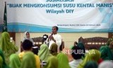 Sosialisasi Bijak Mengonsumsi SKM. Ketua Yayasan Abhipraya Insan Cendekia Indonesia (YAICI), Arif Hidayat menyampaikan paparan terkait susu kental manis (SKM) bersama Muslimat NU di Yogyakarta, Kamis (20/2). (FOTO : Wihdan Hidayat/ Republika)