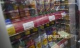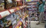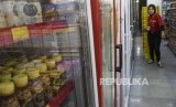 Calon pembeli melintas di depan rak penyimpanan minuman kemasan kecil di salah satu gerai Alfamart di Palembang, Sumatera Selatan, Kamis (20/2/2020). (FOTO : NOVA WAHYUDI/ANTARA FOTO)