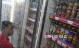 Karyawan melintas di depan lemari pendingin minuman kemasan di salah satu gerai Alfamart di Palembang, Sumatera Selatan, Kamis (20/2/2020). (FOTO : NOVA WAHYUDI/ANTARA FOTO)