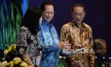 Presiden Direktur PT Bank Central Asia Tbk Jahja Setiaatmadja (tengah) berbincang dengan Presiden Komisaris BCA D.E Setijoso (kanan) dan Direktur BCA Vera Eve Lim usai memberikan keterangan mengenai laporan keuangan full year 2019 di Jakarta, Kamis (20/2). (FOTO : Republika/Prayogi)