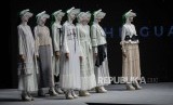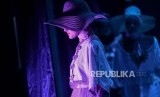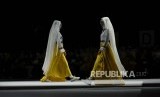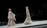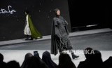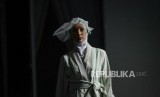 Model memakai busana karya Ajeng Cahya pada gelaran Muslim Fashion Festival 2020 di Jakarta Convention Center, Jakarta, Kamis (20/2). (FOTO : Republika/Thoudy Badai)