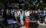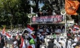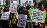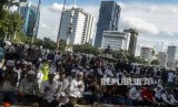 REPUBLIKA.CO.ID, JAKARTA -- Sejumlah massa saat melaksanakan aksi di Jalan Medan Merdeka Barat, Jakarta, Jumat, (21/2).