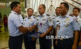 Kepala Staf Angkatan Udara (Kasau) Marsekal TNI Yuyu Sutisna (tengah) berbincang dengan pilot pesawat tempur yang sedang menggunakan mesin Human Centrifuge di Lembaga Kesehatan Penerbangan dan Ruang Angkasa (Lakespra) Dr. Saryanto, Cawang, Jakarta, Jumat (21/2). (FOTO : Republika/Putra M. Akbar)