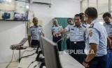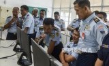 Kepala Staf Angkatan Udara (Kasau) Marsekal TNI Yuyu Sutisna (kedua kanan) mengawasi ketahanan tubuh pilot pesawat tempur terhadap gaya gravitasi atau G-Force yang sedang menggunakan mesin Human Centrifuge di Lembaga Kesehatan Penerbangan dan Ruang Angkasa (Lakespra) Dr. Saryanto, Cawang, Jakarta, Jumat (21/2). (FOTO : Republika/Putra M. Akbar)