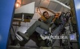 Seorang pilot pesawat tempur dari kesatuan TNI Angkatan Udara bersiap mengecek ketahanan tubuh pilot pesawat tempur terhadap gaya gravitasi atau G-Force menggunakan mesin Human Centrifuge di Lembaga Kesehatan Penerbangan dan Ruang Angkasa (Lakespra) Dr. Saryanto, Cawang, Jakarta, Jumat (21/2). (FOTO : Republika/Putra M. Akbar)