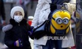 Warga Teheran Iran melintasi jalanan kota menggunakan masker, Sabtu (22/2). Meyusul kematian 5 warga Iran yang terjangkit Corona Virus (COVID-19) pemasaran masker di negara ini melonjak drastis. (FOTO : ABEDIN TAHERKENAREH/EPA EFE)