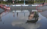 Arena roller sport di Jakabaring Sport City (JSC), Palembang, Sumatera Selatan, Minggu (23/2) berubah menjadi kolam karena terendam air . Arena roller sport tersebut merupakan tempat pelaksanaan cabang olahraga skateboard Asian Games 2018 yang lalu.