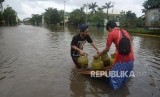REPUBLIKA.CO.ID, JAKARTA -- Hujan lebat yang mengguyur Jakarta dini hari tadi membuat banjir di utara Jakarta tak kunjung surut. Kawasan Berikat Nusantara di Cilincing terendam banjir hingga 60cm