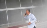 Petugas pemadam kebakaran memasuki gedung Nusantara III saat kejadian kepulan asap putih di Komplek Parlemen, Senayan, Jakarta. Senin (24/2). (FOTO : Republika/Thoudy Badai)