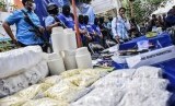 Petugas BNN menunjukkan sejumlah barang bukti pil yang mengandung zat Carisoprodol saat gelar perkara di Arcamanik, Bandung, Jawa Barat, Senin (24/2/2020). (FOTO : NOVRIAN ARBI/ANTARA FOTO)