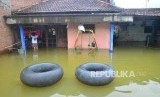 Warga beraktivitas di rumahnya yang terdampak banjir di Dusun Goleng, Pasuruan Lor, Jati, Kudus, Jawa Tengah, Senin (24/2/2020). (FOTO : Antara/Yusuf Nugroho)