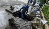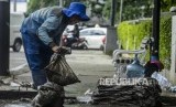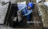 Petugas Suku Dinas Sumber Daya Air membersihkan saluran air di kawasan Gambir, Jakarta itu untuk mengantisipasi terjadinya genangan air saat musim hujan karena saluran yang tersendat.
