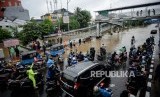 Sejumlah kendaraan terjebaq banjir di Jalan Dr. Sutomo, Pasar Baru, Jakarta, Selasa (25/2). (FOTO : Republika/Thoudy Badai)