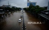 Sejumlah kendaraan menerobos genangan air di Jalan Dr. Sutomo, Pasar Baru, Jakarta, Selasa (25/2). (FOTO : Republika/Thoudy Badai)