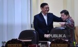 Menko Bidang Kemaritiman dan Investasi Luhut Binsar Panjaitan (kiri) berbincang dengan Menteri PPN/Kepala Bappenas Suharso Monoarfa sebelum mengikuti rapat terbatas di Kantor Presiden, Jakarta, Selasa (25/2/2020). (FOTO : SIGID KURNIAWAN/ANTARA FOTO)